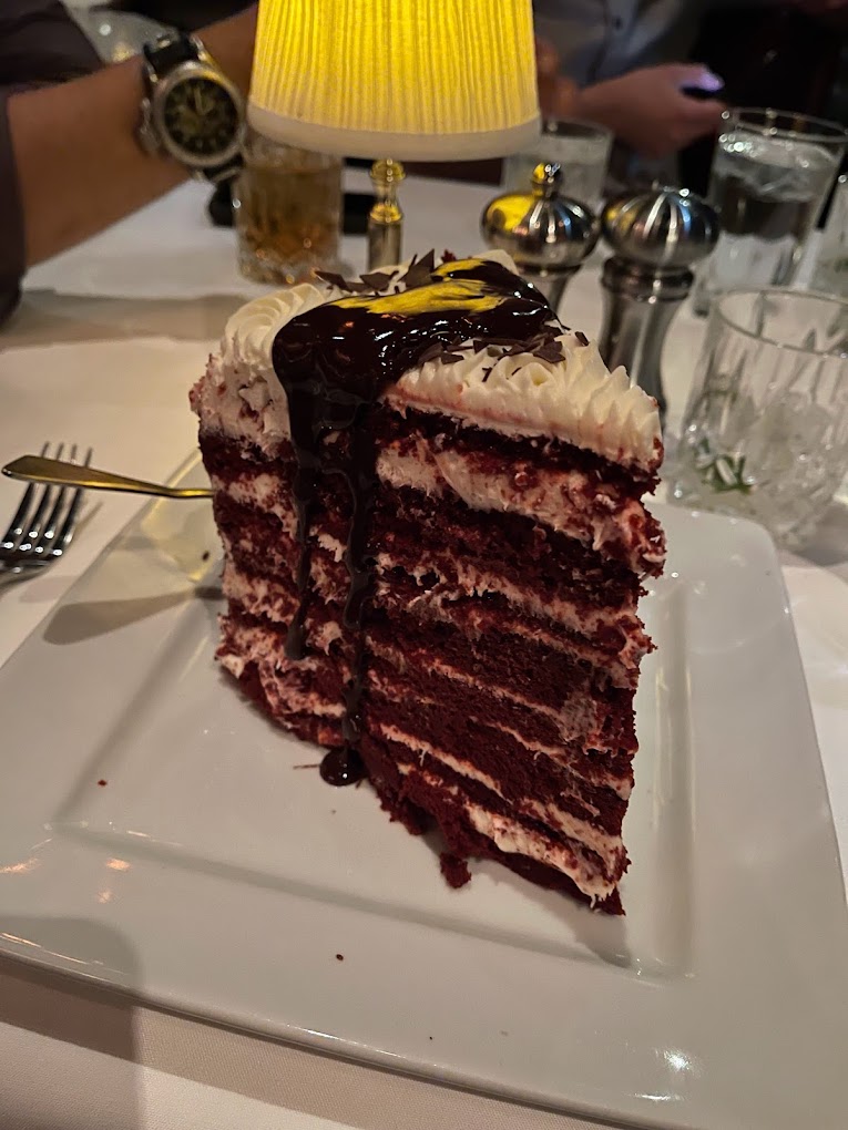 For dessert, chocolate cake and a cup of coffee was our choice.